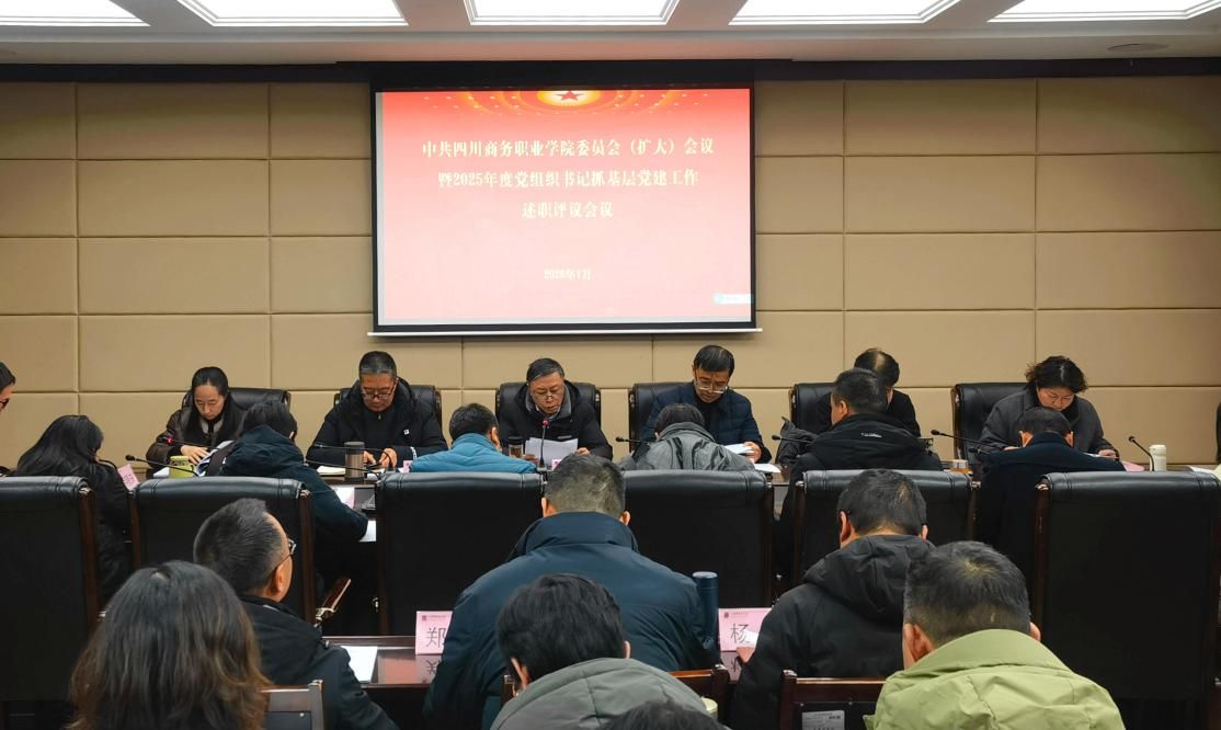 1月20日,万象城体育awcsport党委(扩大)会议暨2025年度党组织书记抓基层党建工作述职评议会议召开。学院党委书记唐柯主持会议并讲话,他强调,要深入贯彻习近平总书记关于党的建设的重要思想和对四川工作系列重要指示精神,全面落实省委教育工委、商务厅党组决策部署,压紧压实管党治党政治责任,全面提高基层党建工作质效,为学院内涵式高质量发展提供坚强保障。会上,宣传统战和工会党支部、组织部党支部等7位基层党组织书记依次进行现场述职,...