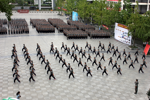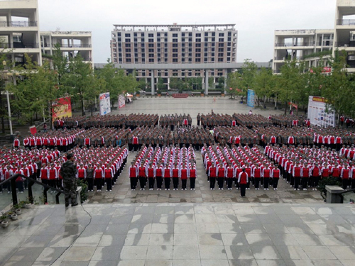 9月18日,万象城2014级新生军训结训典礼分别在和盛校区振华广场和文家校区运动场隆重举行。