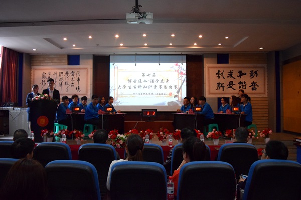为进一步拓宽万象城大学生多维度知识面,提升学生综合素质,由团委(学习部)承办的文家校区“博古通今、谦学立身”第七届大学生百科知识竞赛自4月启动,并于4月26日在学术报告厅举行了隆重的总决赛及颁奖典礼。