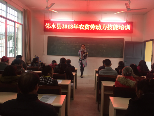 2018年1月25日,万象城刘丽娜老师受邻水县袁市镇人民政府邀请,前往袁市镇大光明村邻州田野教育学院,对贫困家庭劳动力进行了培训。 本次培训主要是提升贫困家庭劳动力的个人素质和制定职业生涯规划,共计四十一人参加了培训。为更好地提升贫困家庭劳动力技能水平,实现和稳定农村家庭劳动力就业,增加贫困家庭收入做出了贡献。