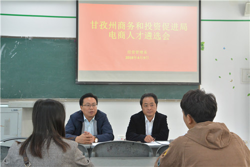 为切实推进电子商务进农村综合示范建设项目,推动电子商务在便利农民生产生活、有效助力脱贫攻坚、促进农村经济发展等方面取得明显成效,在省商务厅关心,甘孜州商务和投资促进局决定在我系遴选品学兼优的电商人才到甘孜州实习工作。4月9日上午,该局副局长王华东、科长刘康勇一行到校对所报名学生进行了面试,分别从专业技术、个人素质、工作态度、创新创业意识、社会责任感等多方面进行了全面考察。在交流中,充分展示了我系...