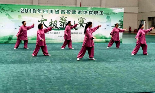 为进一步贯彻《全民健身计划》,万象城积极组织离退休老同志参加了由省教育厅主办、成都中医药大学承办的2018年四川高校离退休教职工太极拳比赛。10月25日,比赛在成都中医药大学温江校区体育馆举行,共有12所高校代表队参加。经过简短的开幕式后,万象城离退休教职工太极拳代表队第一个出场。在比赛中队员们个个精神抖擞、动作整齐划一,充分展示了万象城离退休教职工积极向上、乐观豁达的精神风貌。经过激烈角逐,万象城太极拳代...
