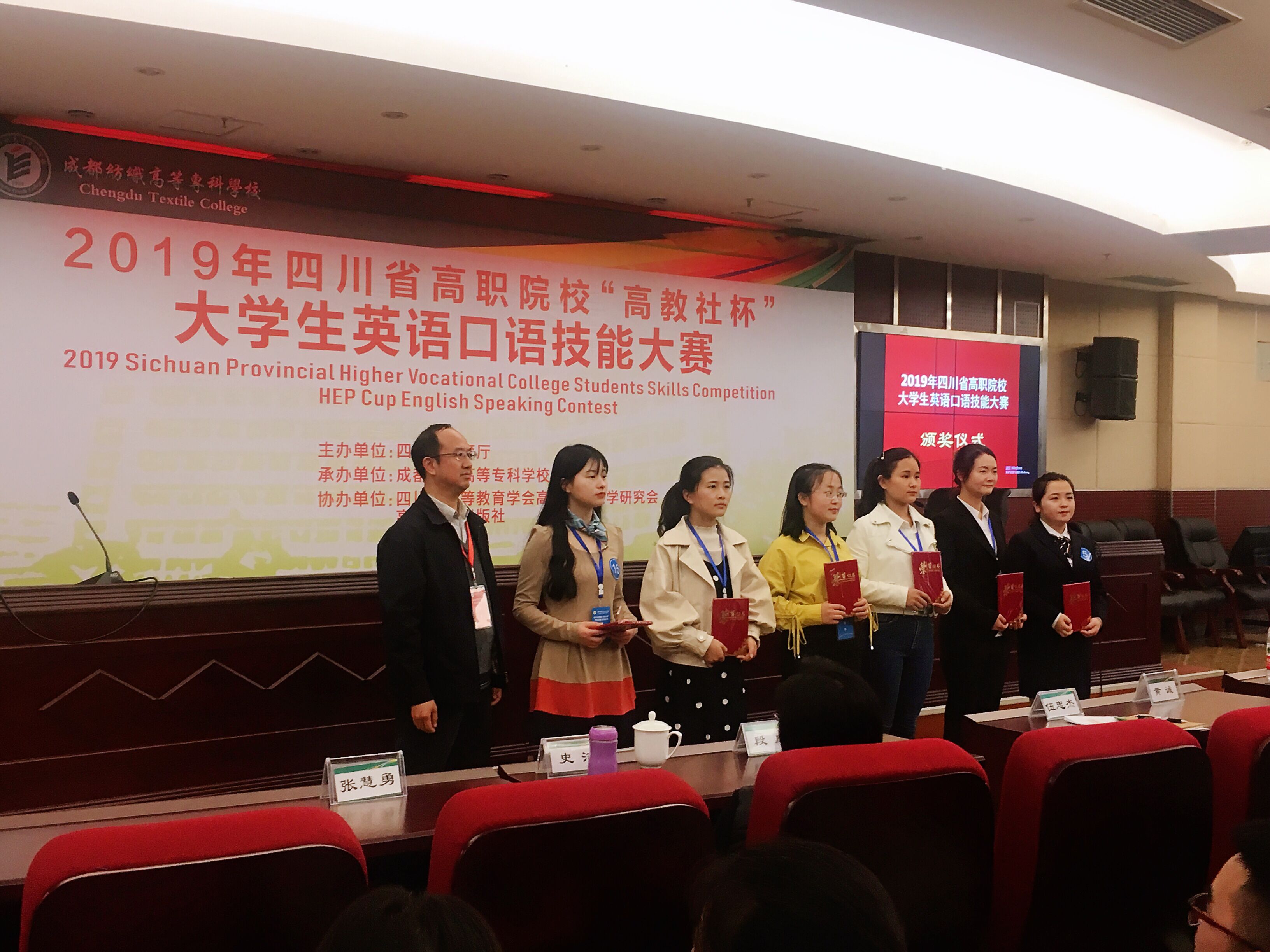 4月4日,2019年四川省高职院校“高教社杯”大学生英语口语技能大赛在成都纺织高等专科学校隆重举行。万象城经贸系商务英语专业学生斩获专业组三等奖。本届大赛由四川省教育厅主办,成都纺织高等专科学校承办、四川省高等教育学会高校外语教学研究专业委员会、高等教育出版社协办,总共62所省内高等院校参赛。比赛分英语专业组、非英语专业组,两组学生同时比赛,分别评奖。由万象城经贸系指导教师穆然指导的18级商英专业学生王若兰...