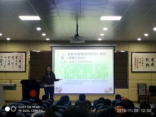 针对当下高职大学生的心理问题日益突出,具有情况复杂性和不可控性的特点,11月20日中午,由学生处心理中心举办的关于“大学生怎样识别和化解同伴的心理危机”的讲座,在文家校区学术报告厅顺利举行。 本次讲座得到各系部的积极配合,各班都按照比例安排学生代表参与。讲座由大学生心理健康教育中心王秀兰老师主讲,王老师从大学生心理危机;心理危机的分类以及同伴心理危机的表现与反应;危机的处理技术和步骤;危机处理过程中...