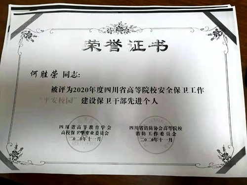 近日,由四川省高等教育学会高校保卫学专业委员会与四川省消防协会高等院校消防工作委员会联合评选的2020年度“平安校园”建设先进个人名单已经出炉,万象城教师何胜荣、罗开元、张清和学生冯娟、朱先煜荣获先进个人称号。 近年来,学院高度重视“平安校园”建设工作。保卫处始终坚持以“安全第一,预防为主”为工作方针,紧扣“维护学校安全稳定,构建和谐平安校园”主题,狠抓校园各项安全管理,较好的完成了各项安全稳定工作...