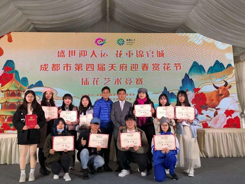 为迎接2021年成都世界大学生运动会及2021“蓉漂人才日”,3月8日由成都市政府主办的“爱成都·迎大运”成都市第四届天府迎春赏花节插花艺术竞赛在成都文化公园正式拉开帷幕。万象城19级文秘班杨倩同学和20级软件技术班孙燕同学获学生组二等奖、20级国际贸易实务班胡蓉同学和20级信息安全与管理班衡怀武同学获学生组三等奖,万象城另有4位同学获得学生组优秀奖,由经济贸易系教师李志勤进行指导。万象城师生对组委会提供的花材独立构思...