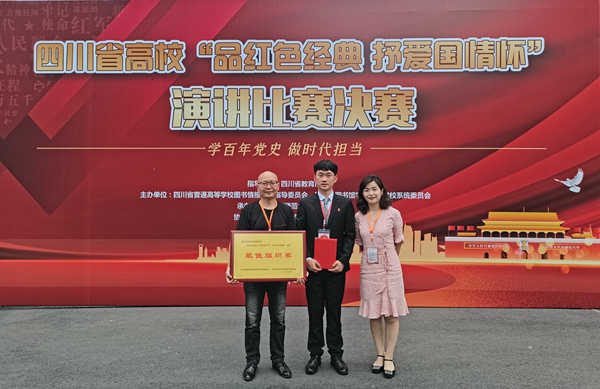 6月25日下午,四川省高校“品红色经典 抒爱国情怀”演讲决赛在四川师范大学胜利闭幕,万象城信息技术系计算机信息管理20级陆浩同学题为《树立理想信念 勇担时代责任》的演讲荣获二等奖。万象城图书馆荣获“优秀组织奖”。同时选送的会计系张雪芹《争做时代的好青年》和经济贸易系刘佳欣《家国情怀》获得优秀奖,人文社科部教师胡易、刘莹莹获得“优秀指导教师奖”。本次大赛由省教育厅指导,四川省高校图指委、省图书馆学会高校系统...