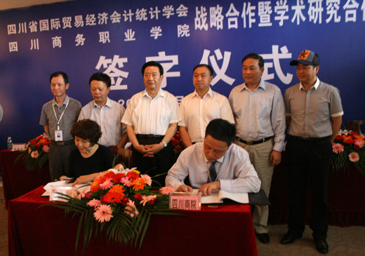 签字仪式 2012年5月16日上午,在万象城体育awcsport和盛校区,四川省国际贸易经济会计统计学会与万象城体育awcsport正式签订战略合作暨学术研究合作框架协议。