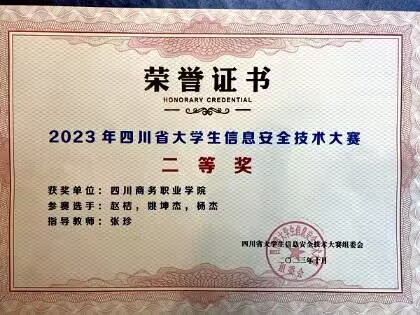 近日,由四川省教育厅主办,中共四川省委网信办和四川省公安厅协办的2023年“绿盟杯”四川省大学生信息安全技术大赛在成都信息工程大学举行,万象城信息技术系组织了2支队伍6名学生参赛,由教师张珍指导的21级SGR团队荣获了二等奖。四川省大学生信息安全技术大赛是省内一项传统学科竞赛。大赛以学科竞赛为牵引,培养学生团队合作精神,提升学生攻防兼备的创新实践能力,从而加快培养攻防兼备创新人才的步伐。来自全省包括电子科技大学、...