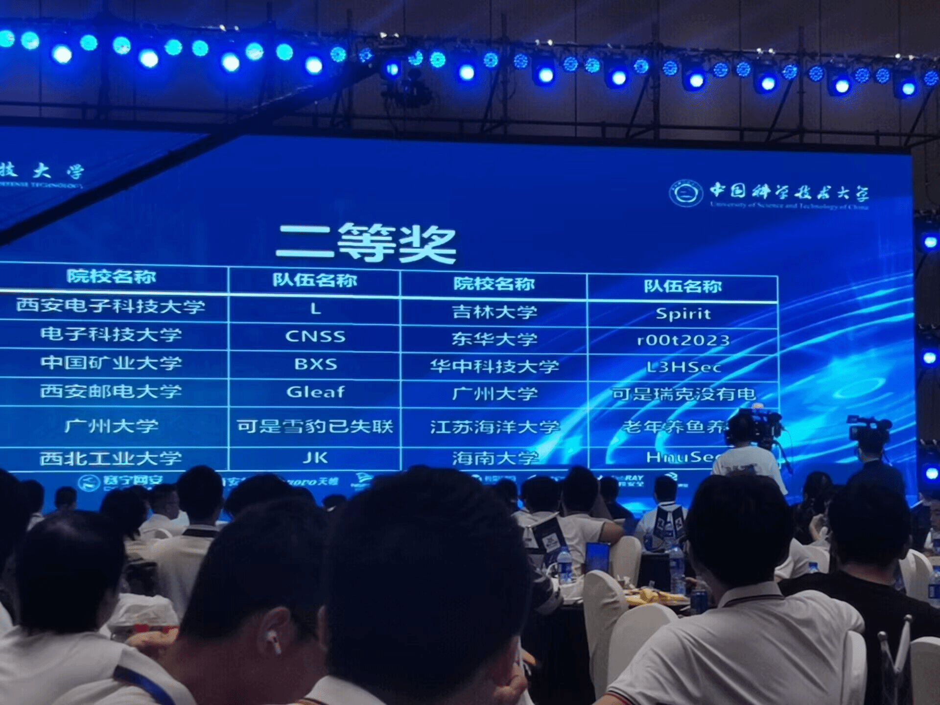 2023年7月26日,第十六届全国大学生信息安全竞赛—创新实践能力赛全国总决赛于在安徽合肥中国书法大厦圆满结束。由网络空间安全系王隆娟教师带队网络攻防实验室HneSec战队成员丁锐、杨奕亮、童智鹏、郭明韬四位海大学子参加此次比赛,经过三天的激烈比赛,克服重重困难,不负众望成功获得此次总决赛二等奖荣誉,拿下历年最好成绩!