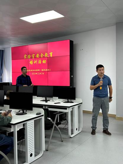 为了加强实验室安全管理,增强taptap师生实验室安全意识,有效提升应急操作技能,提高风险防范和应急处置能力,根据学校实验室设备管理处《关于组织开展实验室安全教育培训活动的通知》(海大实〔2024)50号)要求,taptap于12月3日下午举办实验室安全教育培训活动。学院分管副院长张殿,网络空间安全系主任徐紫枫,数据科学与大数据技术系主任李益红,综合办公室主任朱瑛,各实验室负责人、安全员、新进老师、以及部分研究生共约60人参加培训活动。活动由实验教学中心主任谭毓银主持。