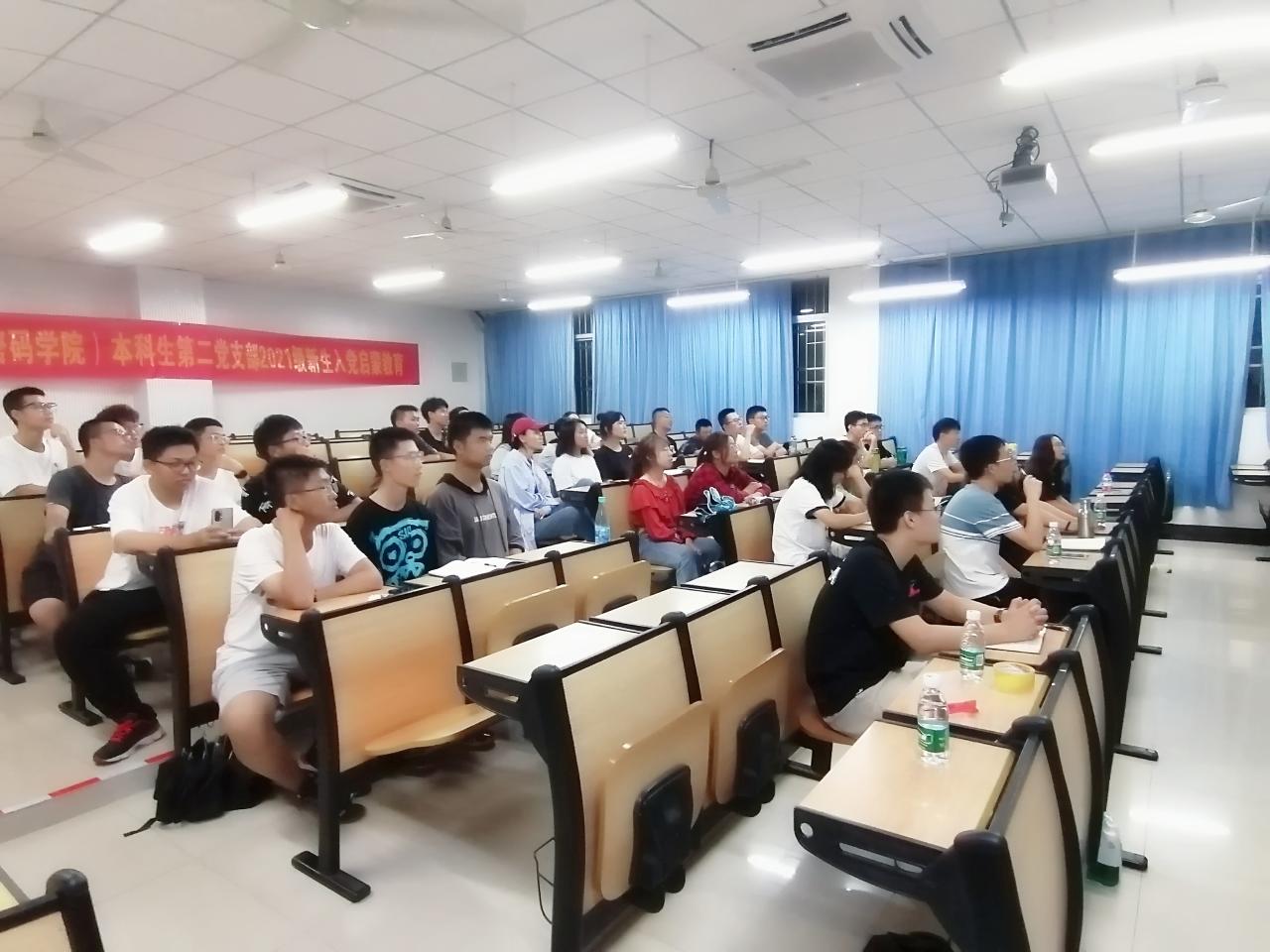 为加强2021级新生对中国共产党的了解,引导新生端正入党动机,2021年9月24日,taptap竞彩足球本科生第二党支部在5教102开展了“红色激扬青春,党旗引领成长”新生入党启蒙教育活动。党支部书记黄苗苗、学生党员及2021级密码科学与技术专业学生参加本次活动。