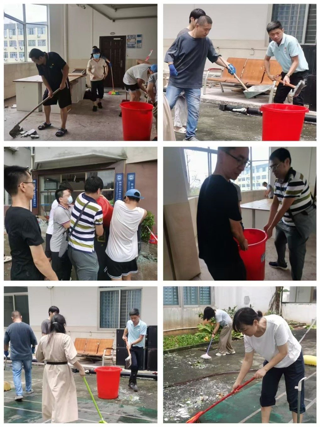 台风无情人有情,师生同心保家园。在学院领导小组的统一指挥下,全院师生一条心,灾后恢复工作开展有条不紊;在书记、院长的带领下,分管副院长各司其职,全体师生干劲十足;在党员先锋队的突击奋战下,不畏艰险,勇于担当,一处处险情被排除;在全体师生志愿者积极参与下,工作有序,责任到人,效率倍增,确保每一层楼每一间实验室排查到位、清理到位、恢复到位。