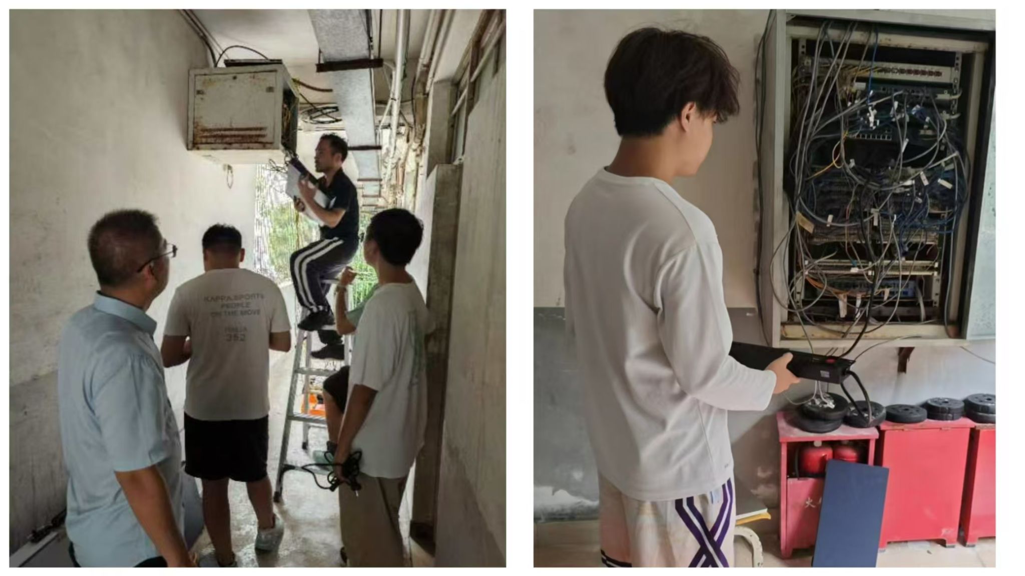 曹春杰院长带队和学院师生到宿舍楼抢修校园网