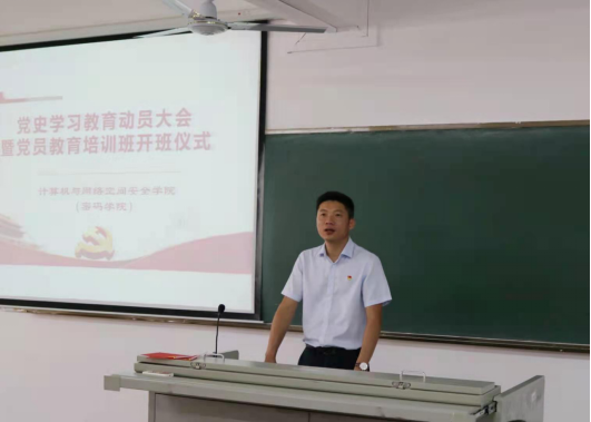 2021年3月30日,计算机与taptap竞彩足球召开党史学习教育动员大会暨党员教育培训班开班仪式,部署党史学习教育相关工作。学院党委书记陈广锐、副书记黄小欧、副院长程杰仁、马克思主义学院副院长杨娜以及全院120余名师生党员参会。会议由学院党委副书记黄小欧主持。