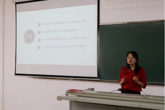 动员大会结束后,学院邀请马克思主义学院副院长杨娜教授为全体党员作了题为《从〈关于若干历史问题的决议〉中看党史学习教育》专题讲座。
