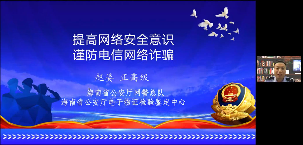 9月9日上午,taptap与人事处、学生工作部共同开展《提高网络安全意识 谨防电信网络诈骗》专题线上培训,为广大师生普及了反电信网络诈骗法,传授快速甄别诈骗手段的方法、如何做好防范的要点,内容丰富、深入浅出、事例详实,深受广大师生的肯定。培训会由taptap胡昌慧副院长主持,全校数千余名师生参加。