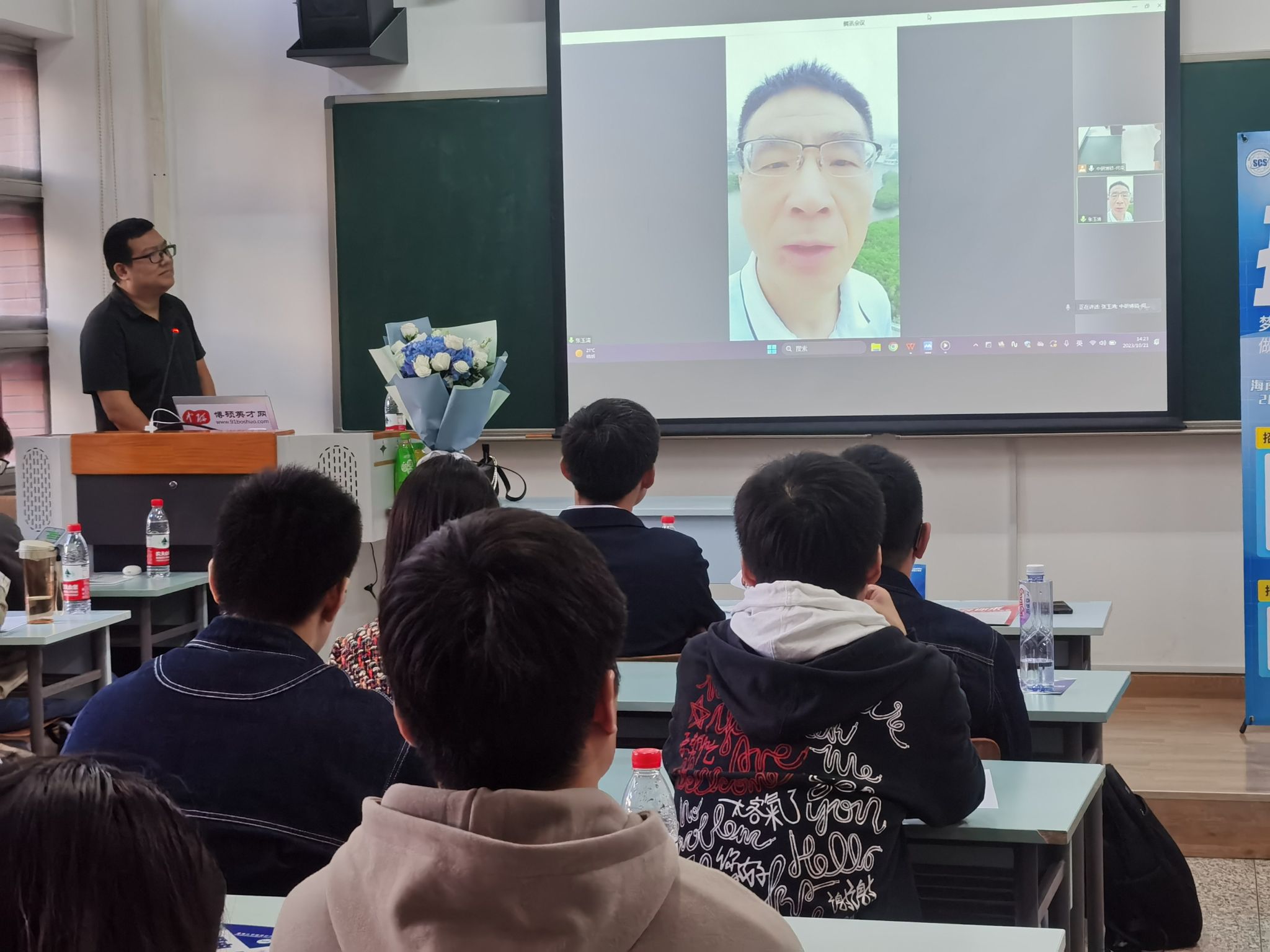 会上现场连线了taptap点点足彩兼职教授张玉清,张玉清教授站在taptap点点足彩风景优美的东坡湖侧,给大家分享了他本人为什么来到taptap点点足彩开展科研工作的心得体会,希望广大学子结合自身情况,选择到taptap点点足彩就业,为海南自贸港建设发展贡献力量。