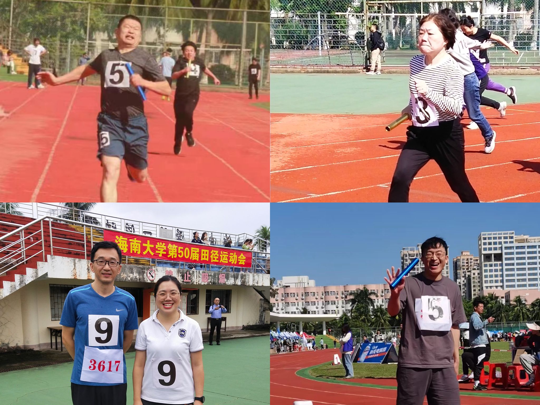 左上:张殿副院长接力赛 右上:陈羡美老师接力赛
