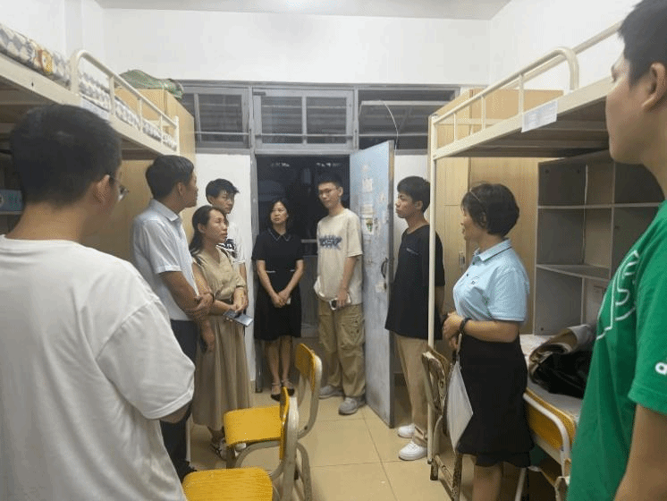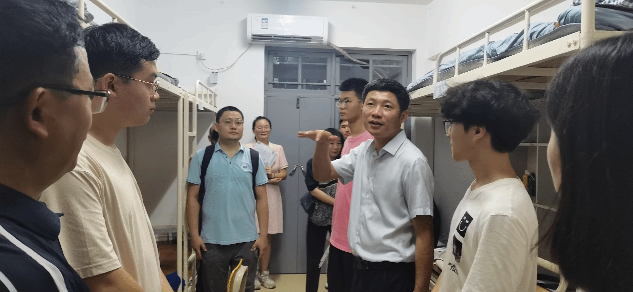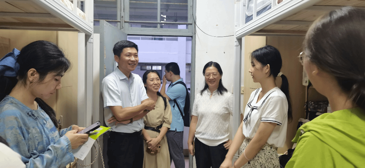 8月30日下午,taptap竞彩足球书记陈广锐、副院长周晓谊、综合办公室主任朱瑛、兼职辅导员莫欣岳一行前往天工书院、乘风书院和淳明书院,与书院领导、辅导员一同走访学生宿舍,看望taptap2024级本科生、研究生,并与新生家长亲切交谈。
