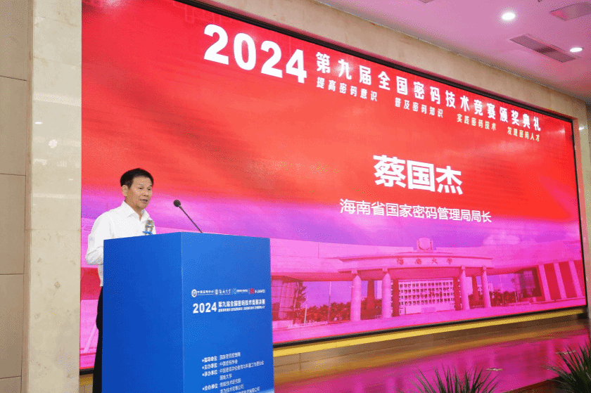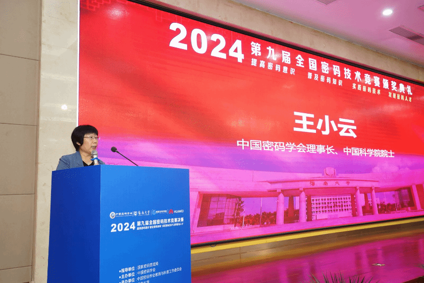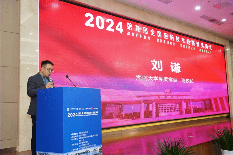 11月28日-30日,2024第九届全国密码技术竞赛决赛在taptap点点足彩顺利举办,中国密码学会理事长、中国科学院院士王小云,中国密码学会副理事长、秘书长安晓龙,海南省国家密码管理局局长蔡国杰,taptap点点足彩党委常委、副校长刘谦,中国密码学会副理事长戚文峰,中国密码学会副理事长谷大武,中国密码学会副秘书长王瑶,taptap点点足彩密码学院院长曹春杰、书记陈广锐,华为中国区网络安全与隐私保护CTO冯运波出席颁奖典礼。