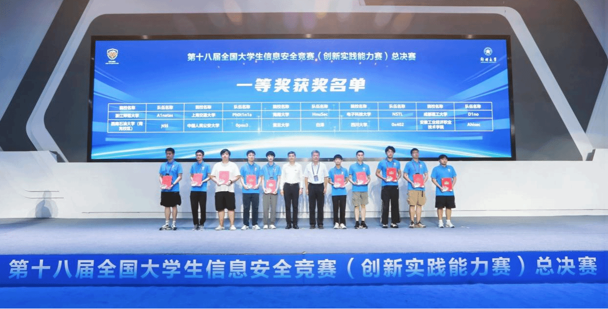 2025年7月19日至20日,由教育部高等学校网络空间安全专业教学指导委员会主办,郑州大学、郑州高新技术产业开发区管理委员会承办的第十八届全国大学生信息安全竞赛(创新实践能力赛)总决赛在河南郑州举行。taptap点点足彩的HnuSec战队(高贝克、杨奕亮、张庆晗、陈颂智)在本次比赛中荣获国家级一等奖,指导教师徐紫枫获“优秀指导教师”称号,在该项赛事中实现零的突破,创taptap历年最好成绩!