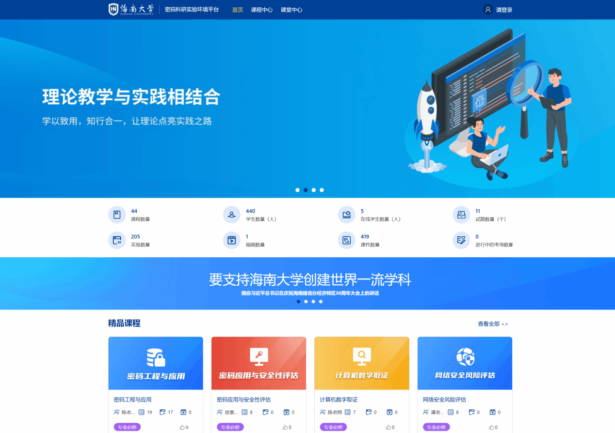 本科专业教学实验室是学生进行实践操作和实验研究的重要场所,旨在加强学生实际动手能力和科学研究能力。学院以“新工科”理念为引领,培养实战化人才为目标,近5年累计投入2300余万元建设国内一流本科教学实验室及教学平台,极大地提升了实战化人才培养能力。学院目前拥有未来人才培养教学实验平台,网络攻防、网络安全、多媒体安全、密码算法与软件、大数据架构等本科教学实验室。通过搭建未来人才培养环境,实施完全学分制选课,打破学院、学科壁垒,强化不同学科专业交叉、教学与科研深度融合,完善个性化人才培养机制,优化个性化人才培养方案,激发学生自主学习动力,培养拔尖创新型人才。实验室支撑学生团队参加教育部、网信办、公安厅、教育厅等国家部委组织的各项网络安全保障活动,参与保障博鳌亚洲论坛、北京冬奥会、广交会等重要活动的网络安全,多次获得肯定和嘉奖;近三年学生在中国大学生信息安全竞赛、全国密码技术竞赛等国家级网络安全重点赛事中多次获得一等奖,累积获得国家级、省级各类学科竞赛和创新创业奖项超200余项,为培养高水平实战化人才培养提供坚实支撑。
