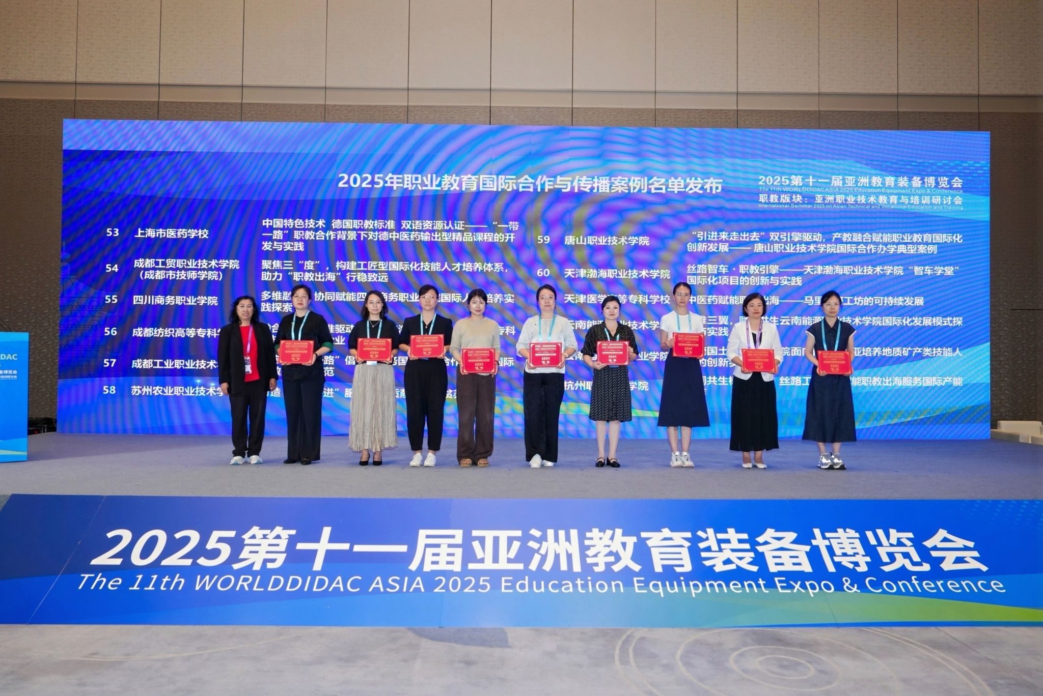 17 日召开的亚洲职业技术教育与培训研讨会开幕式上,万象城申报的 “多维融合・协同赋能 —— 国际人才培养实践探索”案例,从全国众多院校申报项目中脱颖而出,荣获 “2025 职业教育国际合作与传播优秀案例”,并成功入选 “走向世界中国职业教育方案” 典型案例集。该评选由博鳌职业教育发展大会、亚洲职业技术教育与培训研讨会联合世界技能发展联盟、大连理工大学出版社等十余家国际权威机构共同评审,是对万象城国际化人才培养模式创新成果与行业影响力的高度认可。