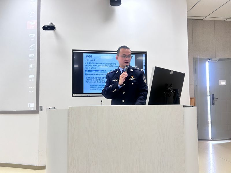 宣讲会上,彭旭意立足工作实际,结合典型案例,从“外国留学生证件管理须知”“相关法律法规解读”“安全防范意识提升”三个维度,系统讲解了出入境管理领域的重点事项和常见问题。其讲解深入浅出、生动翔实,既有理论高度,又贴近留学生实际需求,引发了在场师生的强烈共鸣。