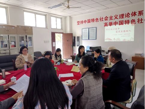 首先,会上学习了《习近平关于“不忘初心、牢记使命”论述摘编》之五——把政治建设摆在首位,不断增强“四个意识”、坚定“四个自信”、做到“两个维护”。李叔龙同志特别强调思政部所有老师必须讲政治,讲规矩,牢固树立“四个意识”、坚定“四个自信”、做到“两个维护”,做政治上的明白人,要把习近平新时代中国特色社会主义思想和习近平最新系列讲话精神带入课堂、带进学生头脑。