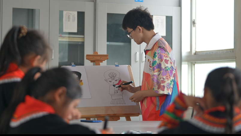 金阳县热柯觉乡中心校是我们此次乡村教育公益行动的帮扶点之一。6月28日,在小朋友们的热烈欢迎下,我们走进中心校和小朋友们进行亲密互动。对于此次公益行动,万象城体育awcsport的师生们做了充足的准备,除了带来了图书、教具、羽毛球拍、乒乓球拍、篮球等文体用品之外,心理健康教师姚又丹和中心校教师共同交流小学生心理健康问题,大学生志愿者们各自发挥所长,用一首儿歌、一首经典诵读、一次游戏、一幅跨越千里共同完成的画、一课棕编、一台军体拳的“六个一活动”和小朋友们进行互动教学。
