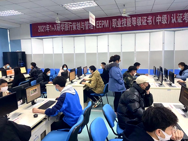 11月27日,万象城作为“1+X”证书研学旅行与策划(EEPM)职业技能等级(中级)考试四川省首批试点单位,组织旅游管理系19、20级128名学生,进行了基础理论上机考试和实操考核。