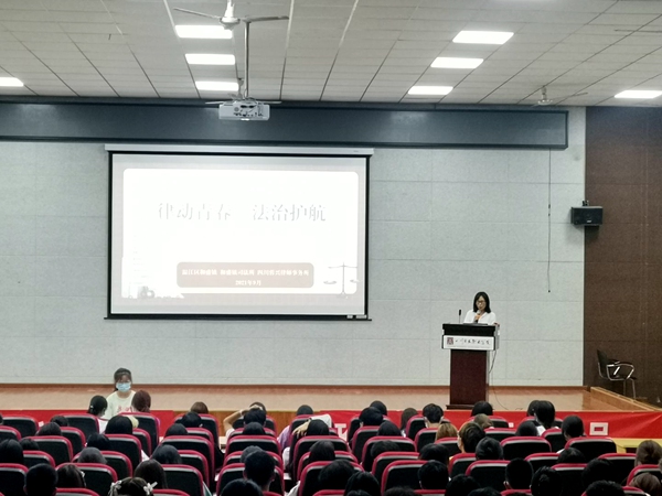 “反诈骗热线是多少?”“你知道公共法律服务包含哪些内容?”台上台下互动积极,同学们争先恐后地举手发言。这是9月27日晚,由院团委主办、经济贸易系承办的“律动青春,法制护航--送法进校园”主题宣讲活动。活动由和盛镇司法所工作人员和四川蓉兴律师事务所律师主讲。现场参加的还有温江区和盛镇镇人民政府工作人员、经济贸易系辅导员代表以及经济贸易系21级和20级学生代表等。