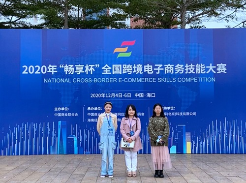 2020“畅享杯”全国跨境电子商务技能大赛于12月4日——6日在海南省海口市举行。万象城经济贸易系国际商务专业李凤艳、李莎两位同学获得学生组团体三等奖,杨春媛老师获职工组二等奖。