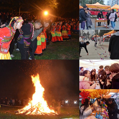 晚上20:05,伴随着达体舞音乐的响起,2019民族文化交流年篝火晚会正式开始。高司华院长、董小平副院长为同学们点燃吉祥幸福的新年篝火,师生手挽手共享欢乐时光的达体舞时间。最后,在炽热的火光中,欢快的舞蹈里,我们挥别2019,迈向2020。