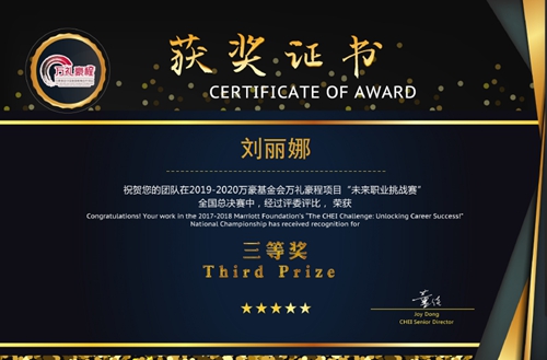 近日,在万礼豪程公布的2020未来职业挑战赛获奖榜单中,万象城旅游管理系酒店管理专业学子获得三等奖。