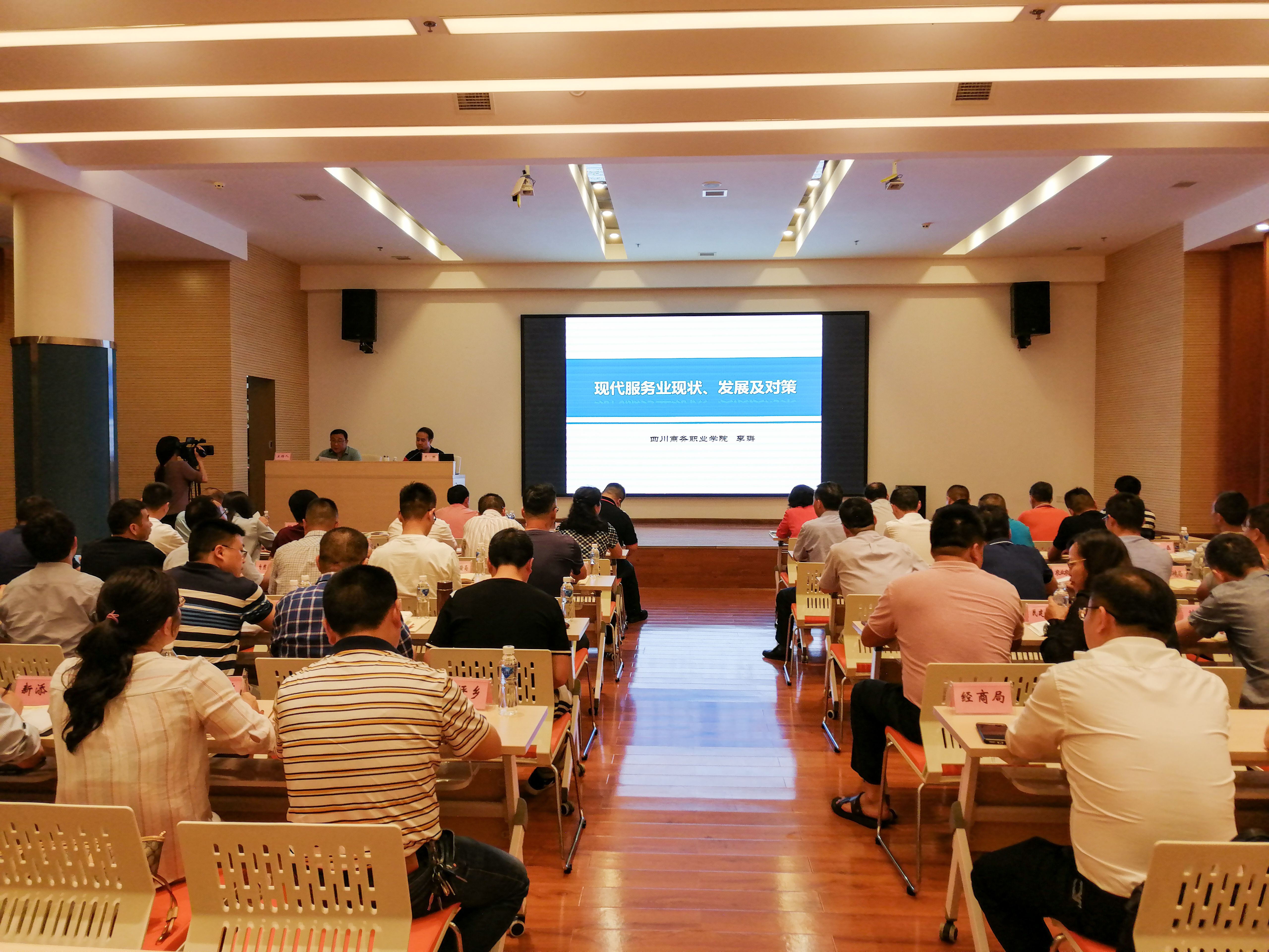 李璐教授从现代服务业发展概述、现代服务业发展与经济转型升级、现代服务业集聚与区域协调发展、以及荥经县现代服务业的发展对策四个方面展开详细阐述。针对荥经县的现状,因地制宜提出了以一个商贸集聚核心,四个园区暨现代物流园区、文化创意产业区、特色商业街区、农副产品电商园区,和龙苍沟旅游发展带、牛背山旅游发展带的