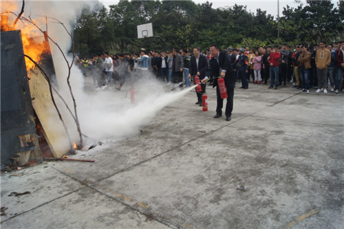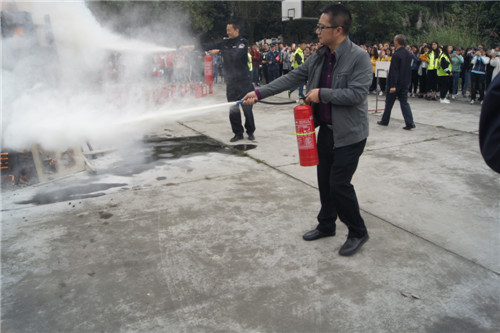 青羊区消防大队刘林认真、仔细地向全体到场教师、学生讲解了消防安全知识和灭火器的正确使用方法,并现场模拟火场。学院领导张军、官培生演示了现场灭火,灭火器的使用方法。随后教职工、学生们纷纷上场“灭火”实战,此次消防演练取得了良好的效果。