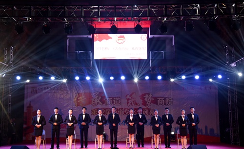 晚上18:15,晚会在音乐社激情的开场歌曲《奔跑》中拉开了序幕。闭幕式环节中,高司华院长首先致辞。在回顾了第12届商道文化节的开展情况、收获的荣誉与成果后,高院长提出了三点希望:一是希望全院师生不忘初心,牢记使命,奋勇向前;二是希望学院各系部大力传承中华优秀传统文化,以“学无涯,商有道”的校训为引领,努力为师生提供具有时代特征和鲜明个性的校园文化活动平台;三是希望学院以党的十九大提出的“文化自信,推动社会主义文化繁荣兴盛”为契机,努力提升学院的文化传承和社会服务能力。