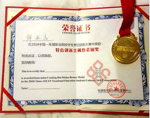 11月7日至9日,万象城旅游管理系由3名参赛指导教师唐凯、常胜、邓彦君和4名学生组成的代表队,参加了2018第四届中国——东盟职业院校学生烹饪技能大赛。本次大赛由广西教育厅、香港职业训练局主办、桂港现代职业教育发展中心、南宁职业技术学院承办,参赛队伍来自泰国、越南、香港、广西、江苏、浙江、山东、四川等地共14支代表队。比赛项目包括中式烹调、西式烹调、特色创新烹调。旅游管理系2017级烹调工艺与营养专业学生鲜承志获得特色创新烹调赛项铜牌,迈出专业建设“川菜走出去”的第一步。