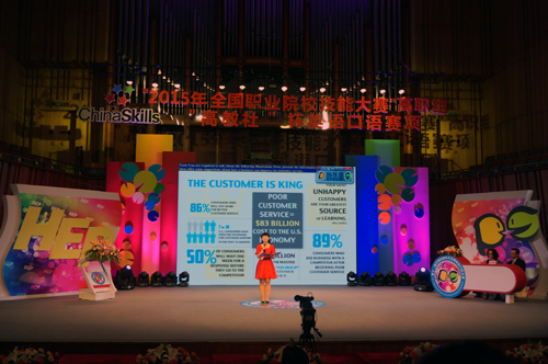2015年6月2日至4日,全国职业院校技能大赛高职组“高教社”杯英语口语比赛在合肥大剧院隆重举行。万象城经济贸易系13级商务英语专业学生陈园在比赛中奋力拼搏,最终以专业组第七名的好成绩,夺得专业组二等奖。