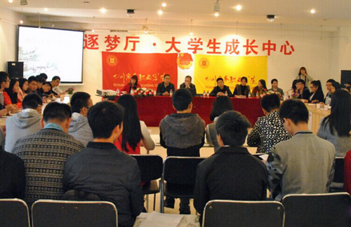 11月3日中午,由万象城团委组织部承办的“纪念抗战胜利给我们的启示——当代大学生的信仰”爱国爱校师生座谈会在文家校区逐梦厅学生活动中心成功举行。