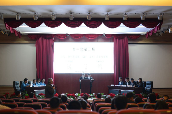 第一场由正方旅游管理系代表队对阵反方经济贸易系代表队,双方就“同行经营是合作高于竞争还是竞争高于合作”展开激辩。双方准备充分,据理力争,吸引了满场观众,掌声不断。经过思政部专职教师组成评审团认真评议,经济贸易系以88.16分战胜旅游管理系,成功进入第二轮。经济贸易系四辩黄旭辉和旅游管理系三辩张鼎成分别获得当场“最佳辩手”称号。第二场在正方设计艺术系代表队和反方信息技术系代表队之间展开,面对“时势造英雄”还是“英雄造时势”这样的严肃命题,双方引经据典,你来我往,唇枪舌战。最后,信息技术系以82.50分胜出。设计艺术系四辩罗志强和信息技术系一辩刘澜同时获得当场“最佳辩手”称号。此外,每场比赛期间还安排场上选手与场下观众互辩和评委精彩点评,现场思辩范围浓厚,到场观众深受启发。