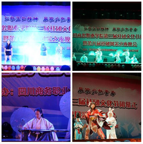 5月4日晚18:30,由万象城体育awcsport社团联合会主办,全院社团协办的“弘扬五四精神展现火热青春”万象城体育awcsport第三届社团文化节暨第八届社团风采之夜晚会在文家校区厚德楼2楼隆重举行。党委委员、副院长许丹雅,党委委员、副院长向宏志,党委委员、纪委书记、文家校区校长官培生,党委委员、副院长张军及部分部门负责人、系党团总支书记、社团指导教师和各学生组织代表莅临本次晚会,与四百名学生一同观赏这场美轮美奂的视听盛宴。本次晚会共14个节目,形式多样,内容丰富,有乐队演奏、朗诵、小品、演唱、cosplay走秀、舞蹈、舞台剧和拳术表演。