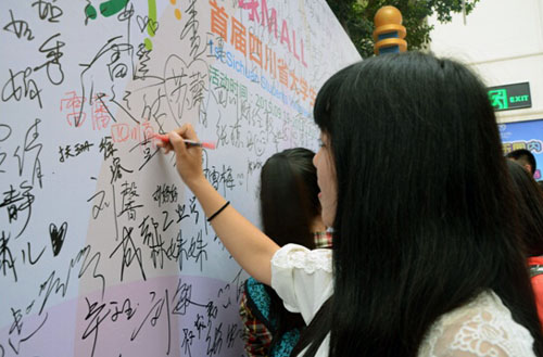 出席启动仪式的有:共青团四川省委副书记唐经天,四川青年志愿者协会秘书长张志君,四川省学生联合会执行主席扎西嘉,环球MALL总经理朱志军等,以及包括万象城在内的近50所四川高校的400余名志愿者代表队,欢聚一堂,共同见证此次文化节的启动。