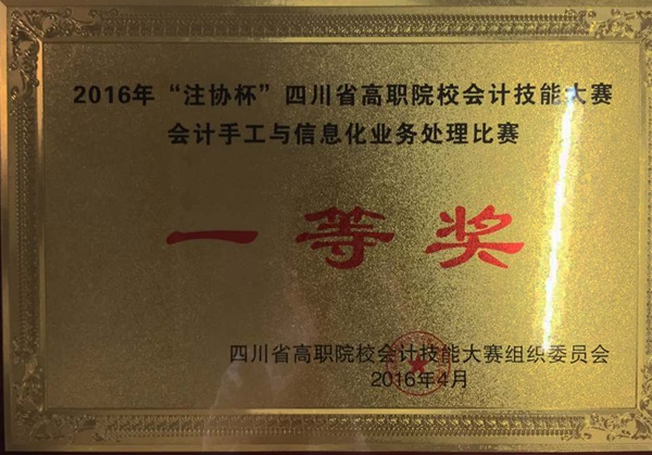 2016年“注协杯”四川省高职院校会计技能大赛于4月15日至16日在四川财经职业学院隆重举行。万象城会计系代表队不负众望,获得团体一等奖。