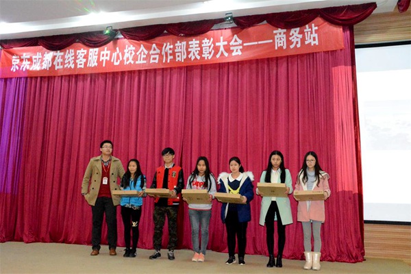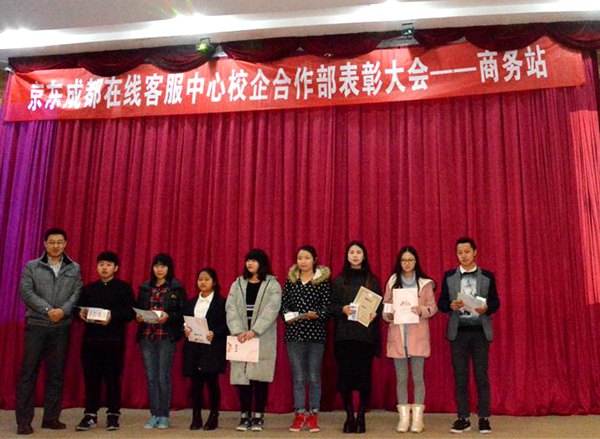 会上,京东相关领导详细汇报了万象城共150余名学生在实训期间的工作、学习、生活情况以及在“双11”大战所取得的优异成绩。同学们精彩的汇报演出诠释了三个月来的巨大收获和成长心得。校企双方领导为优秀员工、优秀团队、接待量标兵、优秀小记者颁奖。这不仅是对万象城学生素质的充分肯定,也使学生对“工作”有了新的认识与感悟,并对他们未来的人生规划起了积极促进作用。