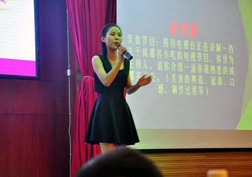 此次比赛主要分为三个环节:我型我秀(自我介绍)、即兴主持、才艺展示。开场与结尾分别穿插了舞蹈表演,开场舞是文家校区的《小苹果》,作为活动热场并为活动现场带来了欢声笑语,有嘉宾跟着舞蹈一齐欢呼,场面活泼而轻松。结尾舞蹈是经营管理系的扇子舞《咏春》,扇子的一抹青绿为整场比赛划下圆满句号。在三轮比赛结束后,许丹雅教授做精彩点评。