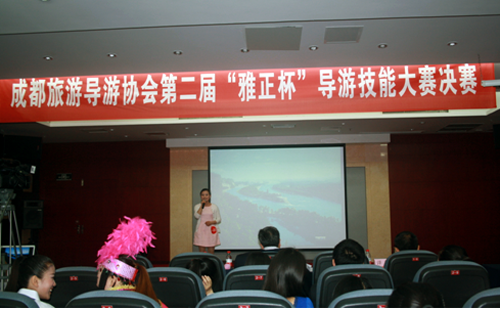 4月26日,成都市天辰楼宾馆,在成都市旅游导游协会主办的第二届“雅正杯”导游技能大赛中,万象城旅游管理系代表队与来自西华大学、成都中医学院、四川大学锦城学院、阿坝师范专科学校、成都农业科技职业学院等省内28所学校的107名选手一起,经过激烈的景点讲解、综合才艺展示等专业技能竞赛,斩获了一等奖一名(陈钥鲆)、三等奖一名(吕冬梅)、优秀奖两名(郑思瑀、王玉琼);优秀指导老师四名(张娟、苟胜东、卢红梅、冷放)以及“最佳组织奖”单位。