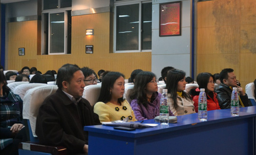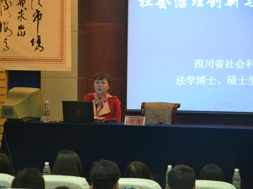为进一步深入学习党的十八大和十八届三中全会知识,特别是对“社会治理体制创新”有更清晰的认识,同时让同学们尽早地在思想上、行动上为毕业就业做好准备。12月3日晚6:30,万象城郑重邀请四川省社会科学院党政办公室副主任、硕士生导师、西南政法大学诉讼法学博士郑妮,在学术报告厅为学院师生进行了一场题为 “社会治理与大学生就业”的专题讲座。本次讲座,学院高度重视、精心筹备。学院党委委员、纪委书记、文家校区校长官培生、文家综合办主任彭枫、部门教师代表、辅导员代表与同学们一道,聆听了郑妮博士的精彩讲座。